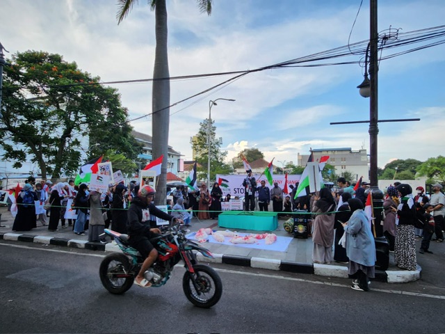 Aksi FPN yang dimulai jam dua siang ini, kemudian berlanjut jam empat sore bersama Solidaritas Seni untuk Palestina dan berbagai komunitas di depan tugu bola dunia Asia Afrika.